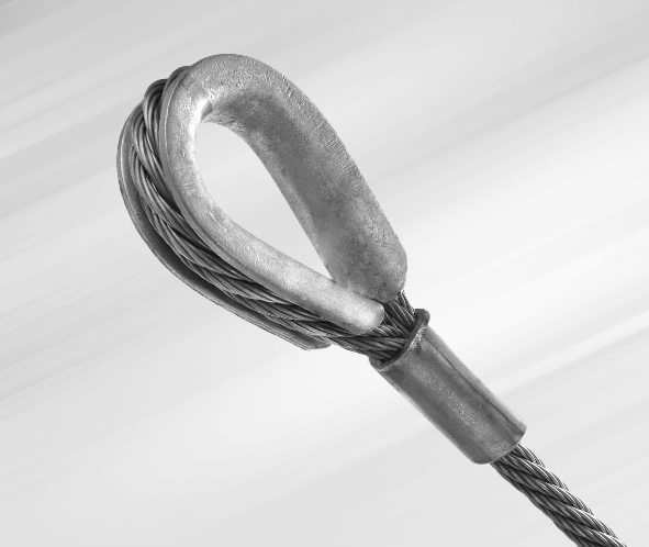 Mechanical swaging is the most common, highest-strength, and most durable form of attaching end fittings to a wire rope. It provides a strong, permanent method of attachment. Zinc die-cast fittings are popular for high-volume applications, allowing for a wider range of end fitting geometries.